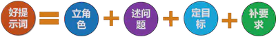 一个好的提示词是由:立角色 + 述问题 + 定目标 + 补要求,这四部分构成的!!